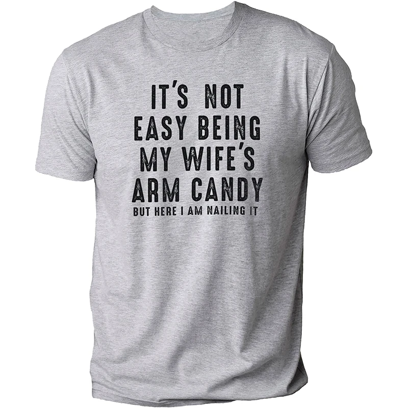 T-shirts for Men It's Not Easy Being My Wife's Arm Candy Funny Tshirts Short Sleeve Husband Tee Shirt Funny Dad Tee Clothing